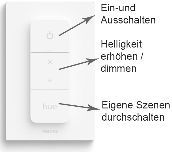 Wenn ein Licht nicht auf die Philips Lichtschalter oder einen vorhandenen Bewegungsmelder reagiert, ist vermutlich der “normale” Lichtschalter für die Leuchte ausgeschaltet. Diesen dann bitte einschalten, kurz warten und nun sollte das Licht wieder auf die Philips Lichtschalter bzw. den Bewegungsmelder reagieren. Sollten die Philips Lichtschalter auch dann nicht funktionieren, können Sie alle 4 Tasten gleichzeitig für einige Sekunden drücken. Anschließend warten Sie ein paar Sekunden und dann sollte der Lichtschalter wieder normal funktionieren.